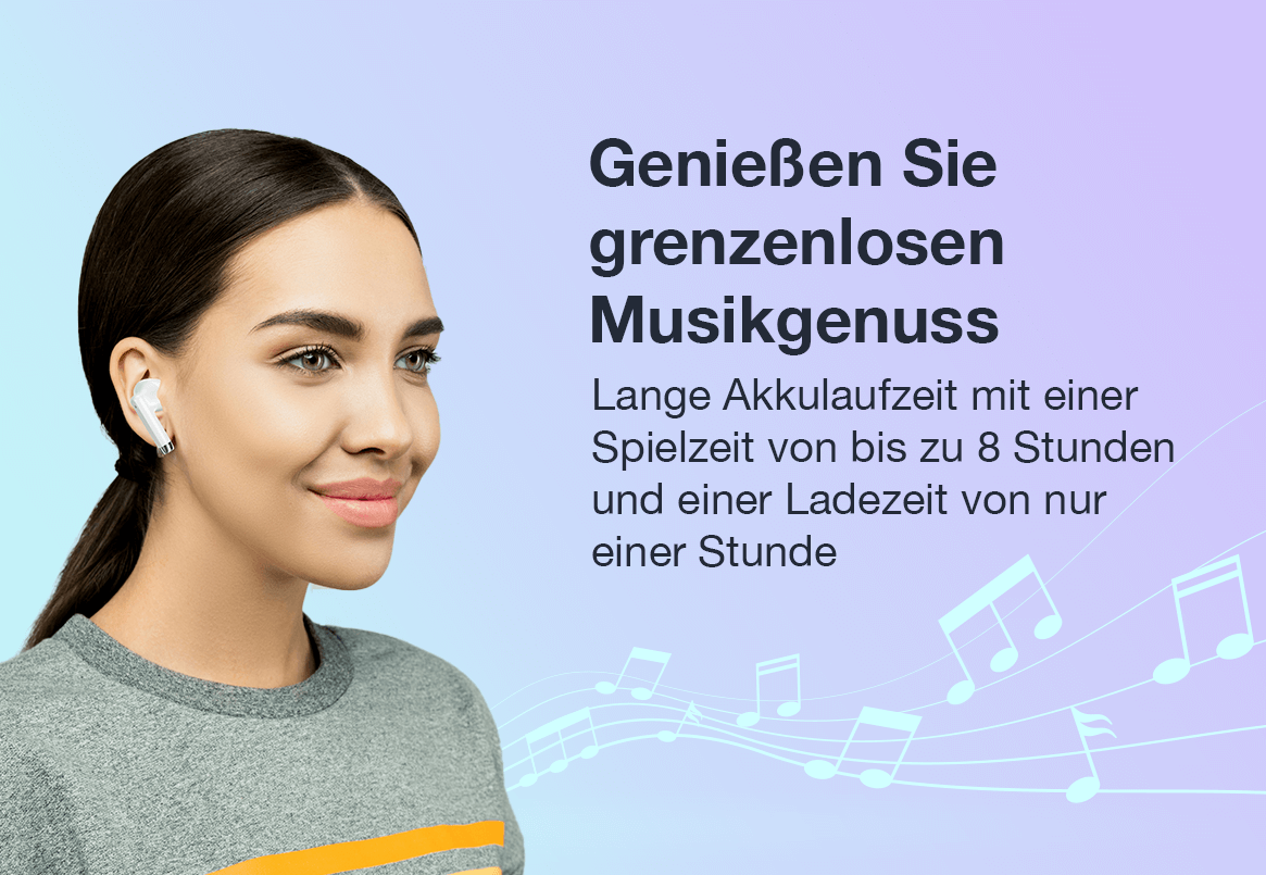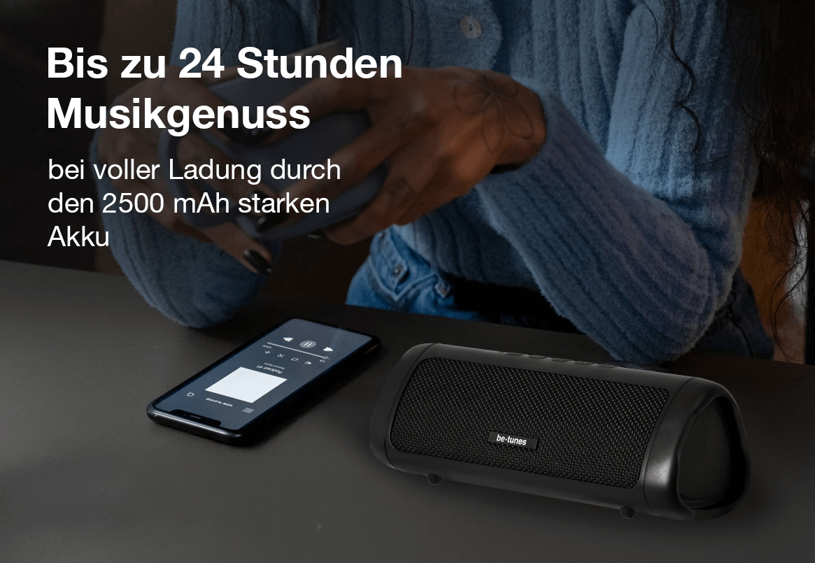 - Lange Akkulaufzeit: Der 2500 mAh starke Lithium-Ionen-Akku bietet bis zu 24 Stunden Musikgenuss bei voller Ladung.